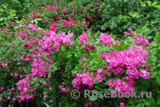 Описание:Карминно-розовые, с оттенками оранжево-розового и светлым пятном в центре, густо-махровые цветки старинной формы, с сильным фруктово-яблочным ароматом. Листва глянцевая, темно-зеленая. Может давать единичные цветки после первого обильного цветения. (HMF)