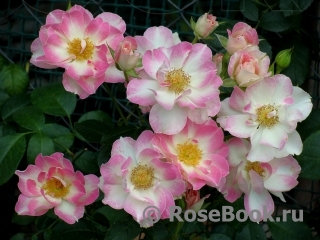 Описание:Цветы среднего размера умеренно махровые, в полном роспуске показывают серединку со светлым пятном в центре и пучком желтых тычинок, цветение все лето, середине зеленая листва с привлекательными красными прожилками, Цветки кремово-белые с розовой окантовкой, с возрастом уходят в розовый.