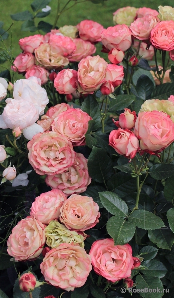 Куст невысокий крепкий 60-80 см. Листья светло зеленые, блестящие. Цветы уникального цвета по мере роспуска из розовых превращаются в кофейно-розовые с зеленоватым оттенком (Роза-Хамелеон), махровые, диаметром 6 см., собранные в соцветия от 2-7 шт. Цветы в виде шариков держатся довольно долго. Быстрое повторное цветение. Зимостойкость и устойчивость к болезням неплохая. ro3a.ru