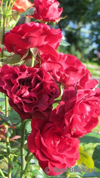 Описание:Цветки чашевидной формы, темно-красного бархатного цвета, со слабым запахом. Цветение волнами на протяжении всего сезона. Листья темно-зеленые, блестящие.