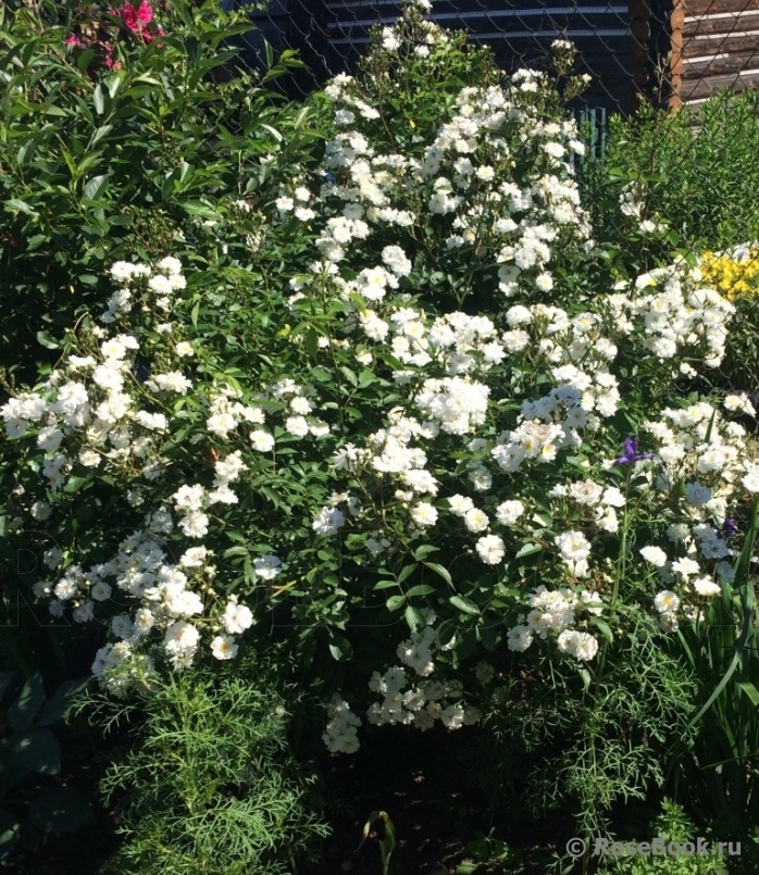 Цветет в две волны. В первую, будто снегом припорошили, вся в бутонах. Во вторую волну цветет менее обильно, но грозди крупнее. сейчас попробую вставить фото. Перерыв между цветением есть,заметный, но куст очень гармоничный даже будучи зеленым. Отцветшие цветки портят вид, полностью отщипывать не удается из-за их количества. Шипов мало, запах приятный. Ни разу не болела с 2008г (год посадки)..ттт.... Отлично зимует. (пару зим не было возможности укрывать)Склонить куст тяжко - очень густой, побеги прочные, упругие, крепкие, поэтому связываю вверх столбиком и заматываю в несколько слоев укрывным материалом. в след выходные буду на даче могу сфоткать. На мой взгляд , роза одна из лучших! Упрямо черенкую ее, желая размножить и сделать живую изгородь))))