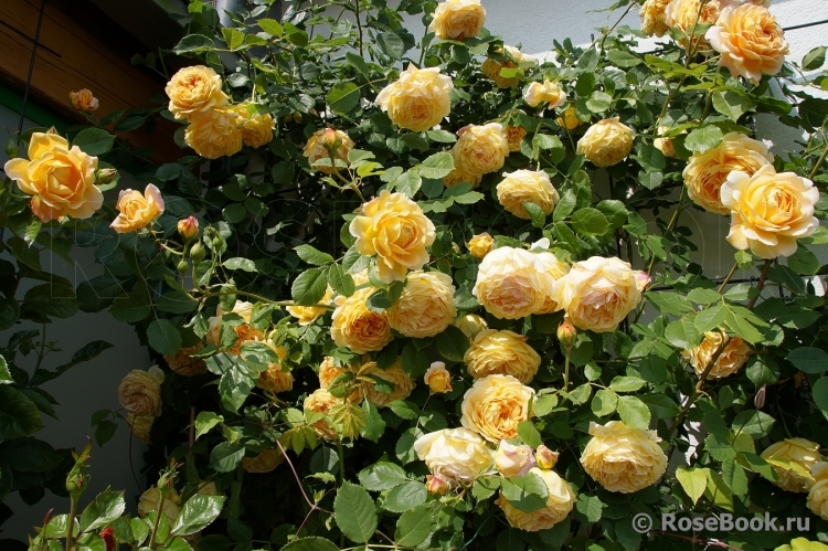 Словно солнышко брызнуло на стену. Чудесная роза!