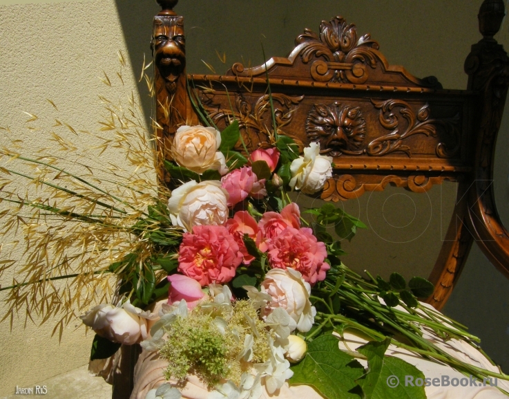 Розы:"Christopher Marlowe", "Wolerton Old Hall", "Amandin Chanel", "Michel Morgan", гортензия дуболистная, злаки.