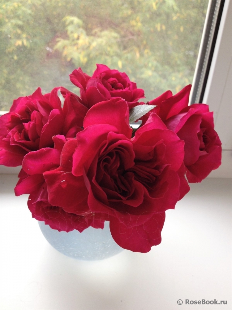 Моя обильница от Нью джерси осенней посадки.Куст на удивление совсем второгодкой не выглядит.Очень пушистый и высокий У розы очень активные верхА,море цветов и бутонов.Цветки рубиновые,очень интересные.Запах очень вкусный,сильный,фруктовый,но не всегда проявляется.Вчера а кусте не особо интенсивный,сегодня в вазе-сумасшедший)) ЧП хватанула конечно,но куда без этого) Очень роза к душе.