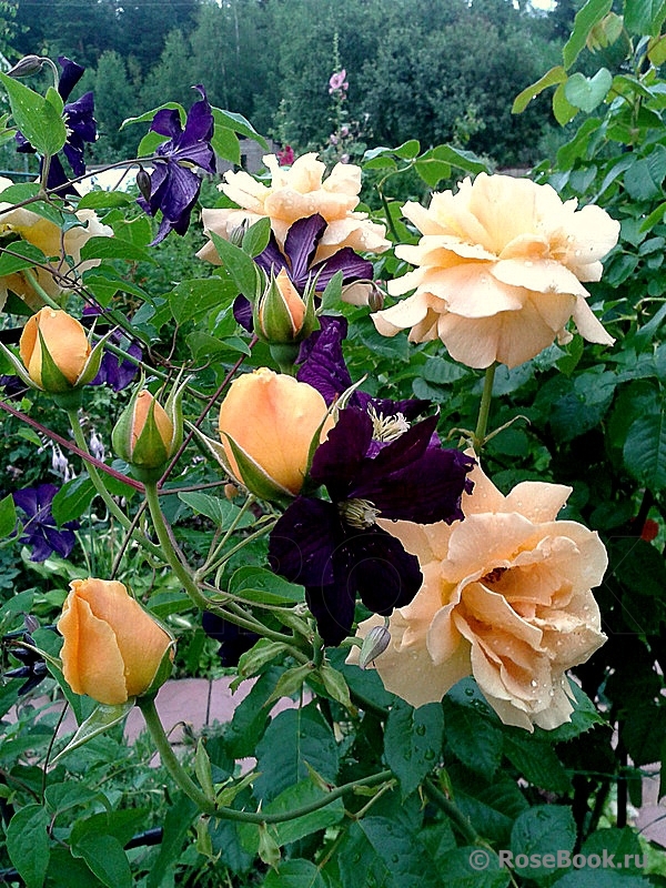 Цветы клематиса, как бабочки на розах! Чудесно!