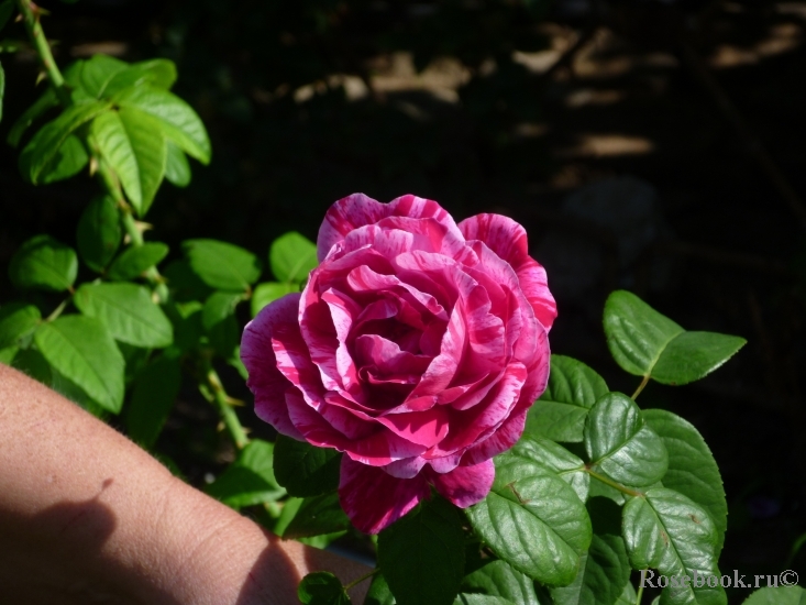 Клара Семеновна! Вам не за что особо извиняться. Действительно, с этим сортом очень трудно. Когда у меня зацвел Папагено, через 2 года после Фердинанда, я решила, что у меня в глазах двоится. Летом 5-летний Ferdinand Pichard достигал отдельными ветками 2-2,3 м. Ну очень жесткие плети, цветы букетами, никаких пониканий вниз. Второе цветение не менее обильное. В перерывах - отдельные цветки, которые по раскраске совершенно разнятся. В основном, густо-красно-розовые с малиновыми вкраплениями. К концу цветения красное переходит в пурпурно-малиновый цвет. Папагено к 3-му году тоже вымахал до 1,5 м. И это он еще подросток! Цветки абсолютно в том же духе. У них обоих, я об этом упоминала, интересные листья: края у них загибаются вверх.