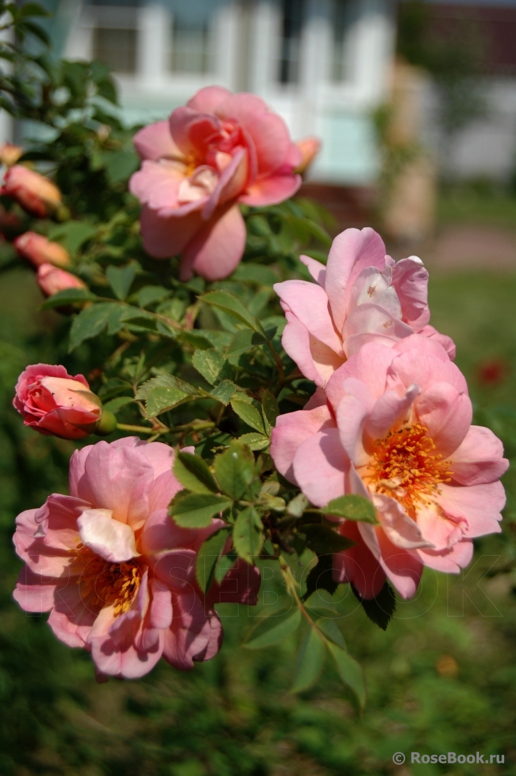 Действительно,дугообразный куст,энергично растущий. Первую зиму я ее укрывала,последующие три зимы она у меня зимовала без укрытия,лишь ветви пригибала к земле,насколько возможно это было сделать.Небольшой недостаток: у меня она немного подхватывает пятнистость.