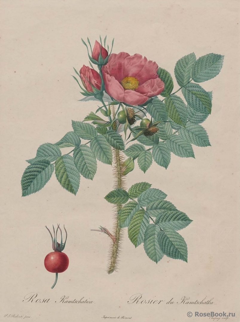 Kamchatka Rose (Камчатка) (Kamtchatica, Rosa kamtchatica Vent., R. rugosa kamschatica, Rosa rugosa var. kamschatica Regel, Rosa X kamtchatica Vent., Rosier du Kamtschatka)Неизвестный интродуктор Россия, 1789Гибрид Rugosa