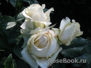 Описание:Бело-кремовые, махровые (26-40 лепестков) цветки, на побегах - одиночные, классической бокаловидной формы. Куст вертикальный, с крупной, темно-зеленой листвой.
