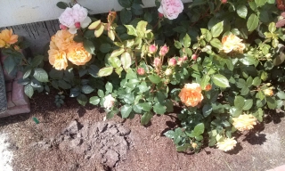 Bernstein rose -на первом снимке слева и на третьем(фрагмент первого снимка),растет у меня 5 лет,зацветает первой и цветет все лето,практически не переставая.