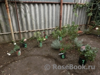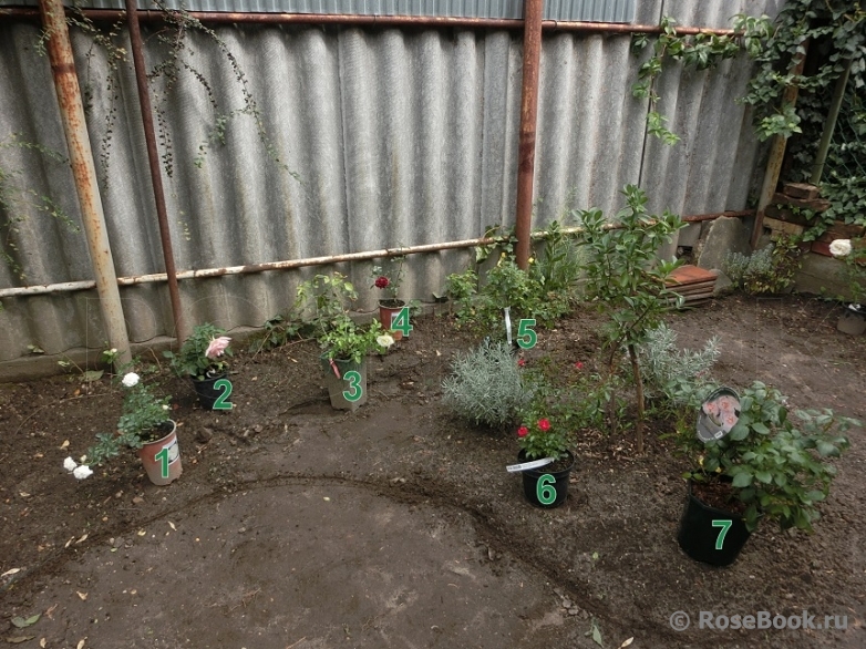 Сад у меня появился в прошлом году. Он небольшой (несколько соток) и довольно запущенный. Только недавно мы расчистили часть сада и я занялась планированием. И тут вдруг обнаружила, что розы очень красивые цветы :-) Ваше сообщество на этом сайте меня только убедило в этом. Посетив ближайшие магазины и почитав ваши отзывы я выбрала несколько сортов роз для своего сада. Но так как я еще очень неопытна, то прошу помочь в сочетании сортов между собой. Сад находится в Будапеште (Венгрия), зона 6b. Со всех сторон закрыт: стена дома; забор металл/шифер метра под три; плотная стена туй; плотная стена из кустарников и деревьев. Первая клумба, которую я хочу оформить, имеет притенение от соседней туи в обеденное время. Вечером солнце уходит часов в пять за дом. В жаркое лето, например как в этом году (под +50 на солнце) верхняя, металлическая часть соседского забора дает много тепла. Забор этот хотелось бы скрыть с помощью плетистой розы. На клумбе уже высажена лаванда (сиреневая) и бересклет японский, который будет формироваться в штамбовое дерево. Как я расположила на клумбе имеющиеся розы: 1 - Alba Mellandina 2 - Royal Porcelain, LEEpel (розовая, очень нежная) 3 - Solero 4 - Don Juan 5 - Mohana 6 - Red Fairy 7 - A Whiter Shade Of Pale
