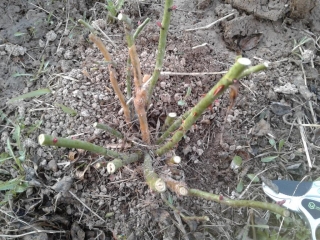 После зимовки и обрезки роз решила все же оставить один веселый кустик на эксперименты, у которого внутри вполне здоровых зеленых веток с веселыми почечками серцевинка была светло-кремовой. Наиболее темные части повырезала именно до светлокремовой в надежде, что обойдется... И вот сейчас хочу показать результат. Все срезы были обработаны изначально РАННЕТом, растения опрысканы ХОМом. Изначально хорошенькие почки замерли в полуроспуске. По факту проверки выяснилось, что серцевинка все равно темнеет. Срезала от почки до почки в надежеде дойти до здорового среза. К сожалению, имеющиеся фото этого не передают, по факту роза практически обрезана по самую прививку... Наверно, если бы сразу обрезала пониже, было бы лучше. Такой кустик был после раскрытия: