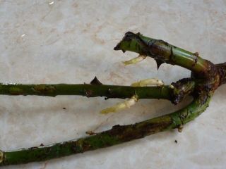 "... основной сезон продаж бывает весной, следовательно, розы выкапывают осенью и где-то хранят. Распространённый способ - это хранение саженцев с голыми корнями при температуре +2 градуса. При таких условиях, если не принимать специальных мер, к весне образуются новые побеги до 10 сантиметров и множество молодых корешков. Чтобы избежать этого, на Западе саженцы обрабатывают растительными гормонами для торможения прорастания. В результате к моменту продажи все почки спящие, зачатков новых корней не видно. Товарный вид налицо, но качество существенно ухудшается. Второй способ - хранение саженцев с корневой системой в торфе в плёночной обёртке и с запарафиненными побегами. Это тоже не здорово: растение практически загерметизировано, а корень должен дышать. Под парафином развиваются гнили. Эти условия хранения не могут не сказаться на качестве саженцев, обычно бывают отпады, и в первый год растения с трудом приживаются. К тому же ослабленные растения подвергаются разным гнилям и плохо переносят первую зиму. Хотя некоторые неприхотливые сорта и выдерживают такие испытания. Все эти способы хранения применяются в интересах крупного бизнеса, для удобства оптовой торговли..." Понимаю, что информация может быть приведена на сайте также с не вполне бескорыстными целями. И всё же... Наверное, стоит сделать для себя некоторые выводы - и не только на основании этой информации, но и на основании собственного опыта. Мои выводы примерно такие. 1. По возможности покупать саженцы местных производителей, и притом лучше всего осенью. 2. Обязательно вымачивать все саженцы в противогрибковом растворе. 3. У импортных саженцев, которые придётся всё равно покупать весной, всеми мерами стимулировать корнеобразование (в частности, применяя Корневин или янтарную кислоту, а также гуматы, Силиплант и пр. стимуляторы и адаптеры, добавленные в глиняную болтушку). 4. У всех саженцев максимально сохранять корневую систему, подрезая только повреждённые корни. 5. Обязательно удалять запарафиненные части побегов, обрезая их и замазывая срезы садовым варом. 6. Соотношение "вершки - корешки" при работе с импортными саженцами не должно быть равным: "вершки" можно срезать даже до одной - двух почек, в то время как "корешки" нужно сохранять почти полностью. Вот так я представляю себе основные правила обращения с саженцами. Интересно было бы узнать ваше мнение. |