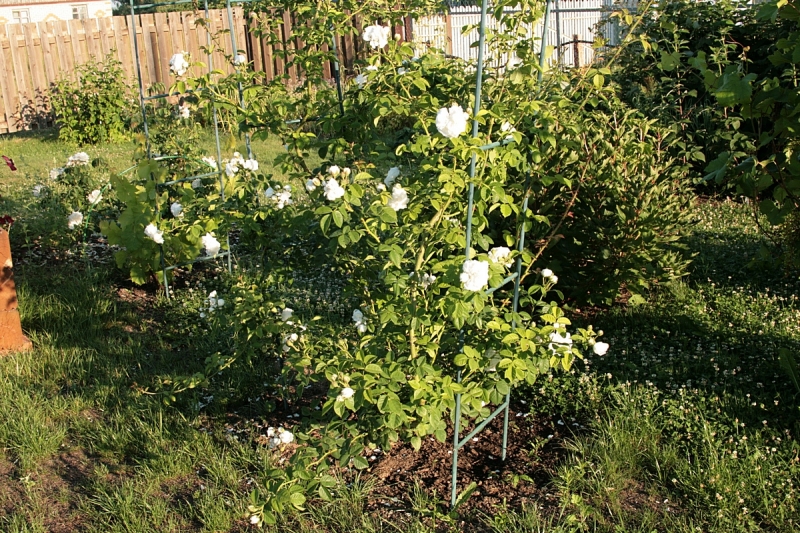Уважаемые знатоки! Столкнулась с проблемой, поскольку впервые посадила в этом году розу Long John Silver, гибрид Сетигера. За один сезон она дала огромные мощные побеги, 3-3,5 м длиной, которые заплели металлическую арку. Побеги очень толстые, покрыты просто устрашающими колючками - этакими акульими зубами. Что делать теперь? Пытаться снять с арки и уложить на землю под укрытие? Оставить на опоре и обвязать лутрасилом, стараясь изолировать от металла? Посоветуйте, пожалуйста.