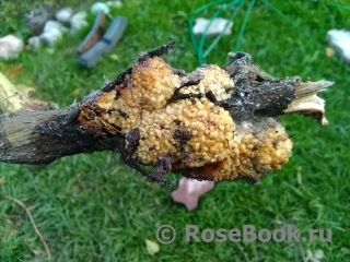 Я боролась за спасение Palais Royal. После обнаружения такого вот на её корнях прошло два года, роза цвела, выдала высокий в 2,5м побег в прошлом году, а в эту зиму погибла.