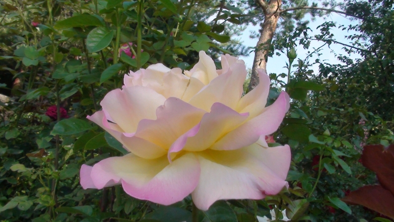 Весной, на базаре, я купила Eiffel Tower (Eiffelturm). Ничего впечатляющего от нее не ждала. Мне ее дали "на сдачу". Первый цветок не впечатлил. Да пахнет, чайно-гибридная. Стандарт. Но вторая волна цветения этой первогодки поразила меня в самое сердце. Огромный, очень красивый цветок, который еще и одуряюще пахнет! Расцветает по одиночно, сейчас стоит вся в бутонах. Красавица!