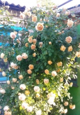 | Очень красивая, здоровая роза с приятным нежным ароматом. Лист матовый. 3 волны цветения. Плетистая, 3 метра. Цветок 8 - 18 см.Цветёт в первую волну шапками цветов от 5 до 15 шт. Вторая волна и третья больше одиночными цветами. Не вымерзает без укрытия, только прикапываю. Роза на 12 баллов. |