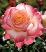 A very beautiful rose that has an “Olde World’ appeal about it. Abundant flowers fill this bush from Spring to Winter. Very compact and exuberant growing hybrid tea filled with beautiful, noble-trained, large flowers.