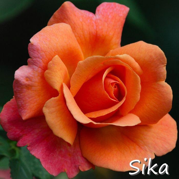 Роза Сика – очень сильное и выносливое растение. Цветок крупный, чаще в кистях до 5 штук. Листва темно-зеленая. Красные, практически лососевые крупные цветки собраны в соцветия в виде кисти, имеющие по 4-5 бутонов. Сорт неприхотливый, повторноцветущий.