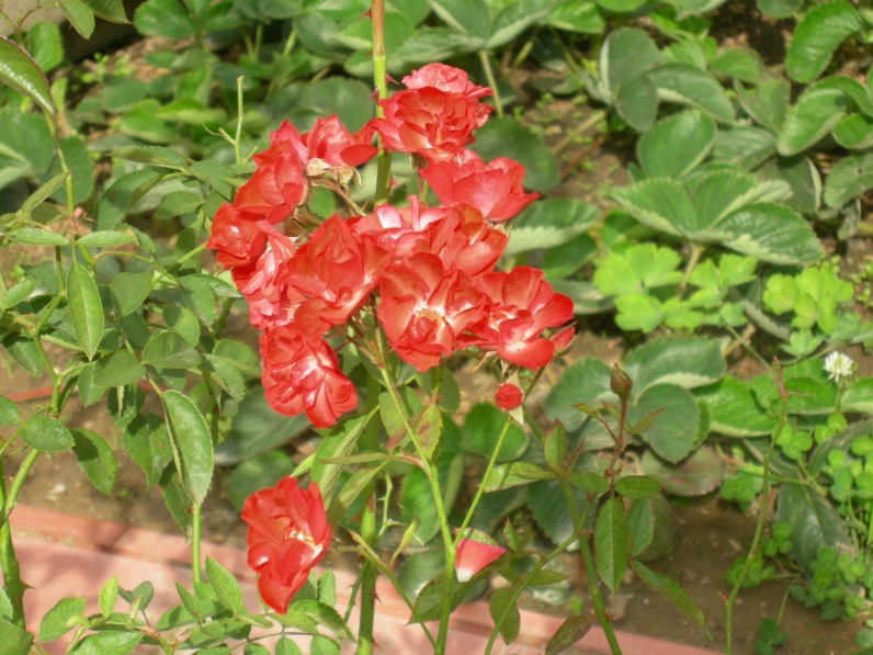 | Это роза патио, но у нее крупные оранжево-красные цветы |