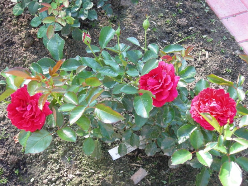 | У этой розы очень интересный цвет: красно-малиновый. Цветет обильно, практически не переставая. |