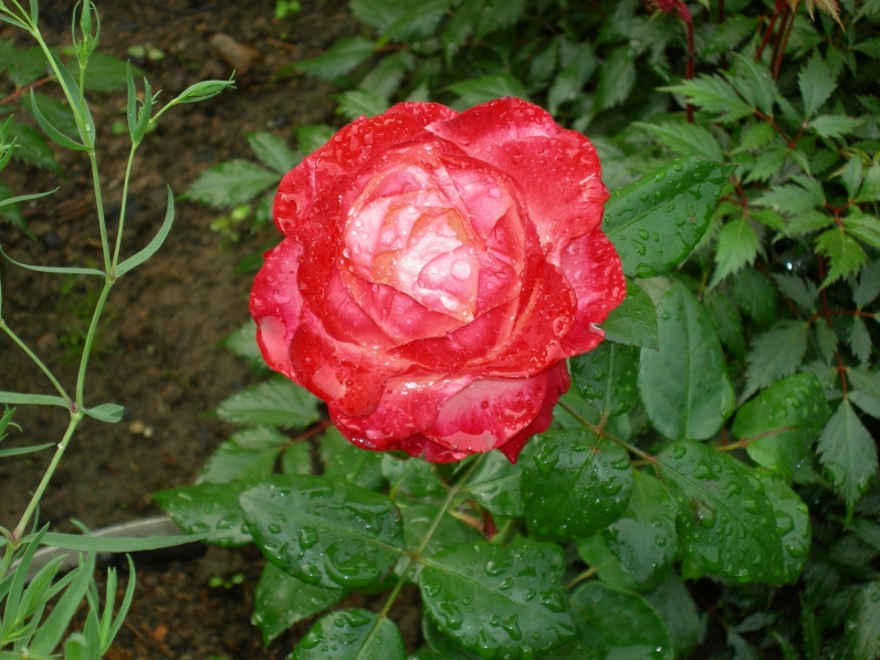 | Чайно-гибридная красно-белая роза |