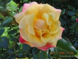 | Необыкновенно красивая роза. Цветы очень крупные до 15 см, нежно желтые. По мере распускания концы лепестков розовеют. |