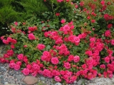 | Роза покупалась в Ашане как абрикосовая, но выросла красной мелкоцветковой. Цветет обильно, отцветшие цветочки опадают сами и кусти стоит всегда опрятный. |