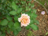 | Еще одна плетистая роза. Цветет обильно розово-абрикосовыми цветами, но пока невысокая. |