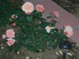 | Эта канадская роза очень обильно цветет. В начале сезона цветы 6-8 см абрикосово-розоватые, к концу сезона цветы мельчают и становятся розовыми |