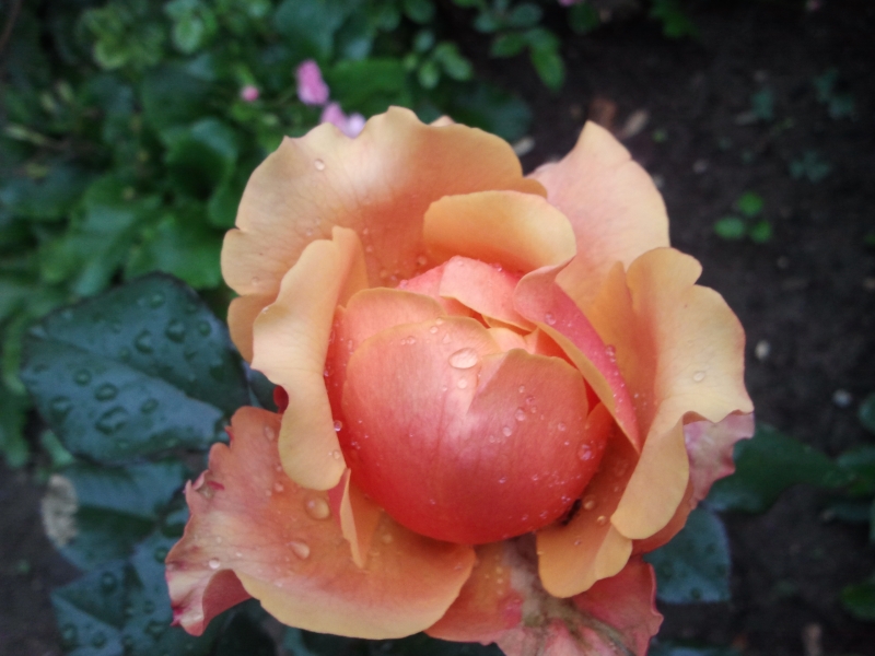 Оранжево-красные бутоны этой розы раскрываются в крупные махровые цветки. Издали они выглядят оранжево-желтыми, но вблизи различаются медный, абрикосовый и лососево-розовый оттенки. Цветки душистые, с тяжелым розовым ароматом. Годятся для срезки. Молодые листья красноватые, позже становятся светло-зелеными. Куст прямостоячий, около 80 см высотой и 50 см шириной. (VER) |