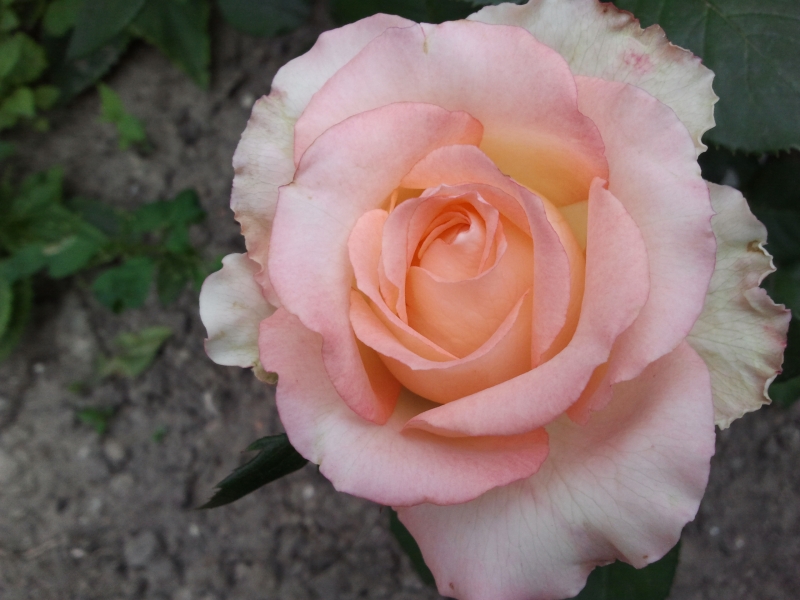 Необычная расцветка бутона, сочетающая в себе кремовые, розовые и салатовые тона выделяет сорт на фоне однотонных роз. Форма цветка – плотный бутон - в середине и волнистые лепестки - вокруг, создающие впечатление воздушности. Куст сильнорослый, прямостоячий, шипов не много. Листва матовая, светло-зеленая. |