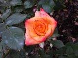 | Чайногибридная роза необычного цвета. Куст сильнорослый, прямостоячий, компактный, высота 70-90 см. Листья темно-зеленого цвета, блестящие. Цветы имеют форму бокала, крупные, 8-10 см в диаметре. Внутренняя сторона лепестков имеет оранжевый цвет, внешняя сторона винно-красная. Имеет легкий аромат с фруктовыми нотками. Цветёт с конца июня до первых заморозков. Светолюбива, предпочитает солнечные места, достаточно засухоустойчива. Зимостойкость - высокая. |