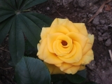 Роза имеет слабо выраженный аромат, но цвет бутона и распустившегося цветка полностью это компенсирует. Жгучий ярко-желтый цвет лепестков, напоминает солнце. Классическая форма чайно-гибридной розы с высоким центром, на побегах в основном одиночные цветки. В раскрывшемся состоянии края лепестков имеют тонкую оранжевую полоску. Лепестки с четко очерченными краями, как-будто резные, плотные. Необыкновенно яркий желтый цвет при интенсивном солнечном свете выгорает до лимонного. Куст высокий, вертикальный, идеально подходят для срезки. Колючесть средняя. Листва темно-зеленая, блестящая, выгодно подчеркивает цветок.