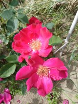 | John Innes Ароматные, крупные, полумахровые цветы яркого вишнево-красного оттенка с серебристо-белыми пятнами в центре и кремово-желтыми тычинками. Листва густая, здоровая, темно-зеленая. Сорт очень привлекателен для пчел. Непрерывное цветение в течение всего сезона. HMF, classicroses.co.uk. Смотреть сорт полностью | |