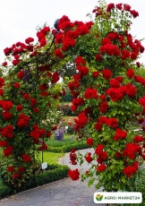 ![]() | Ван Лав" (One Love)Сорт розы плетистой "Ван Лав" - родом из Италии, но, не взирая на происхождение, этот плетистый «соблазнитель» прекрасно растет в наших широтах. Своими глубоко шарлаховыми бархатистыми цветами он покорит любителей алого и не только их. Цветение долгое, почти непрерывное. Нераскрывшийся бутон бокаловидный, наружная сторона лепестков темно-красная с серебристым отливом. Полностью раскрытый цветок обнажает сердцевину с желтыми тычинками. Стебель необычный - коричнево-красный красиво контрастирует с листьями. Розы "Ван Лав" выращивают как плетистые с опорой на стены дома, беседку, на въездной арке. Посаженный кустом он все же потребует опоры, или подвязки к колу – иначе его длинные побеги разлягутся. Насыщенный красный цвет не даст затеряться кусту этого сорта даже на фоне яркого цветника, но лучшим "задником" для него будет, наверное, живая изгородь из хвойных. Если осенью обрезать розу посильнее, то на следующий год она образует много сильных цветущих побегов. Цветоносные стебли довольно длинные, прочные и ровные - они позволяют украсить срезанными цветами дом и веранду. Преимущества сорта розы плетистой "Ван Лав" цветы очень большие 10-11 см, в кистях по 3-5 повышенная устойчивость к грибным болезням прочные побеги до 3 метров цветение на однолетних побегах сильный сладкий аромат непрерывное цветение