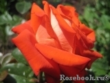 | Очень яркая чайногибридная роза. Куст прямостоячий, высотой 100-120см. Цветок диаметром 10-12 см, насыщеного оражевого цвета, обратная сторона лепестков имеет матово-белый оттенок. Бутон бокаловидной формы, очень плотный (имеет 26-40 лепестков), при раскрытии серединку не показывает. Цветы появляются на концах побегов по одному в течении всего сезона. |