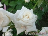 | Шраб с чисто белыми полу-махровыми цветами 9-16 лепестков и желтыми тычинками. Цветение повторное, аромат изменчивый,листва глянцевая. Куст густой, рослый, "холмообразный". |