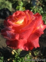 | Ярко-красные цветки с темно-желтым реверсом, умеренно-махровые (20-28 лепестков), в полу-роспуске классической формы, затем - свободной чашевидной, на побегах одиночные. Аромат чая и яблока. Куст хорошо разветвленный, с глянцевой, средне-зеленой листвой, шипов очень мало. Цветение практически непрерывное. |