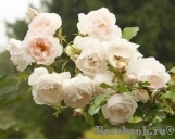 | Эта невысокая роза выглядит особенно привлекательно за счет многочисленности ее цветков. Они молочно-белые с желто-сливочным центром. Цветки густомахровые, появляются в крупных роскошных кистях. Куст компактный, очень обильноцветущий. |