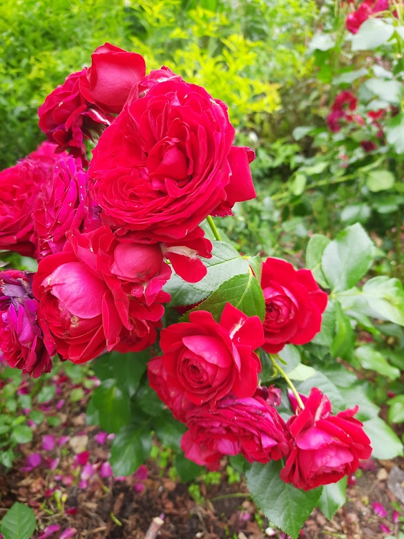 ![]() | ЛарисаНадежная флорибунда, может использоваться как почвопокровная роза. Цветы ярко красные, диаметр в роспуске 8 см., соцветия 3-4 шт. многочисленные, махровость 58 лепестков, середина закрыта в замок. Листва зеленая, блестящая. Шипы редкие, шиловидные. Кусты раскидистые, высотой 60 см., шириной 90 см. Цветение обильное, повторное; с июня до морозов. Зимостойкость и устойчивость к грибным заболеваниям очень высокая. Используется для групп, одиночных посадок.Усынины, 2022г |