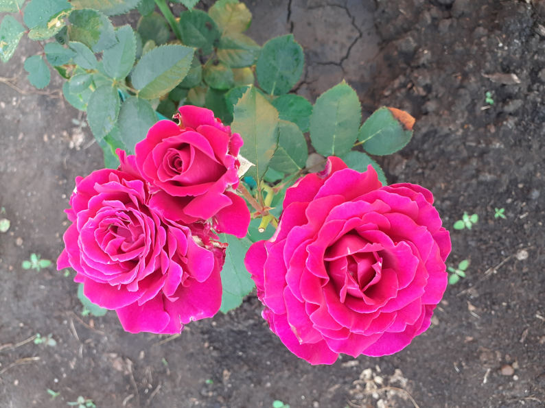 Цветы насыщенно малиновые , плотно набитые , обильно цветущая . высота куста 80 см , возможно будет и выше , розочка первогодка .