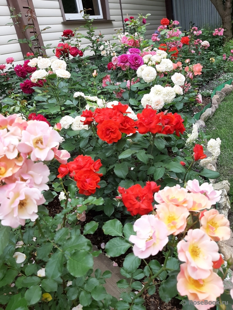 Описание сада: Сад расположен в городе Пушкино Московской области на 3-х сотках. Это счастье жить при розах! Проснулась и в сад: что у меня сегодня новенькое распустилось? И ходишь вокруг них кругами, заодно и утренняя прогулка по свежему воздуху. Маленькие сады тоже имеют право на существование! Все очень лаконично: розы и газон плюс немного многолетников и кустарников. | |||||