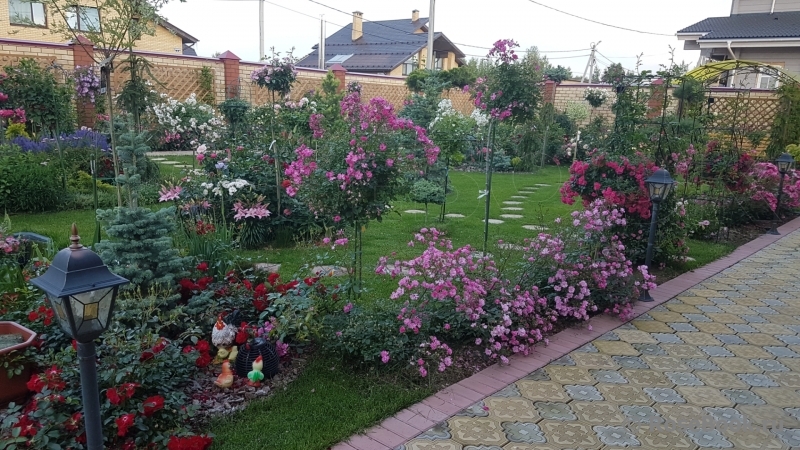 Описание сада: Мой сад находится в уральском городе Пермь, он ещё совсем молод, все посадки были сделаны осенью 2017 года и весной 2018 года, ели и сосны приобретались в контейнерах от 5 литров до 60, розы основная масса из Нью-джерси и частично из Подворья и Садовой коллекции, многолетники из местного питомника Красная гвоздика. Но не смотря на юность моего сада, я его успела очень полюбить и он в ответ на мои чувства к нему, доставляет мне огромное удовольствие от возможности созерцания его своеобразного обаяния. Приглашаю в гости... | |||||