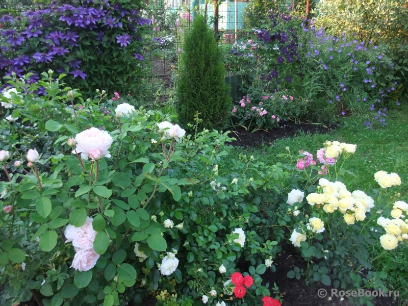 Марина Анатольевна, уютный садик у Вас. Дорожка с изгибом, везде цветы, розы встречают взгляд... Великолепно! Смотрю старая ель на заднем плане?Ну очень уютно!