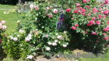 Henry Kelsey, Schneewittchen и какой-то английский пересорт. На заднем плане - Гортензия черешковая "Petiolaris" и Ирис сибирский "Cambridge" Перейти в галерею сада |