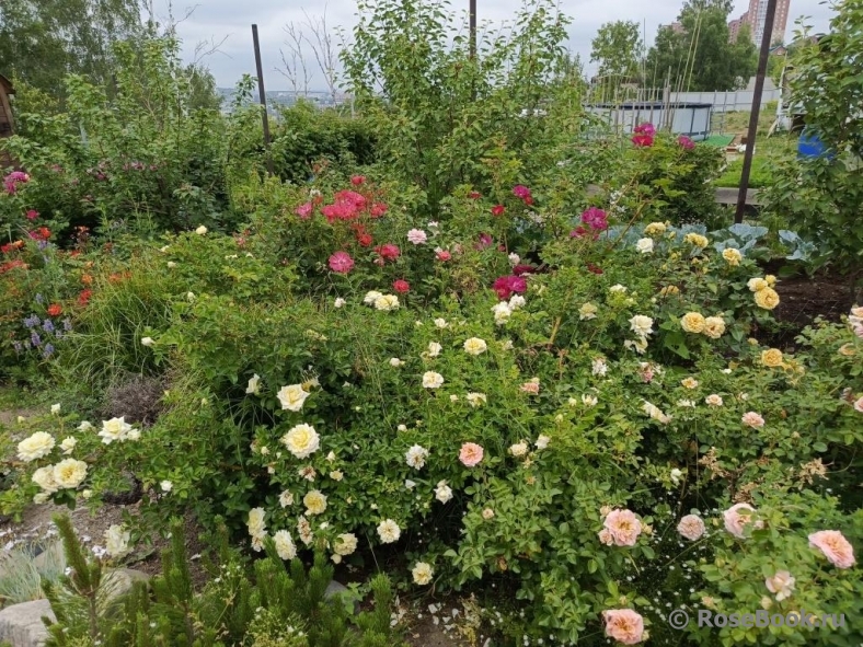 Описание сада: Сад-огород в Восточной Сибири (Иркутск). Площадь участка с постройками 8 соток. Участок насыпной, выравнивали очень крутой склон строительным грунтом. Объем отсыпки был огромным - 1500 КАМАЗов. Сам грунт - песня. Глина+асфальт+бетонные блоки+мусор бытовой и после сноса домов на том месте, откуда возили. Ямки копаются ломом,докуда хватит сил. Сверху отсыпано по месту перегноем. Роз порядка 140, около 90 пионов, около 40 дельфиниумов. Есть множество других растений. Саду шестой год (год закладки 2018). | |||||