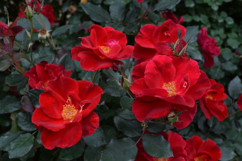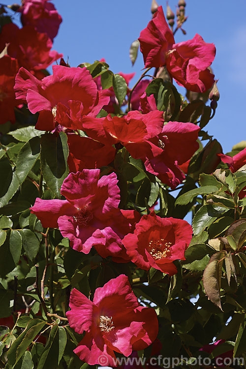 Medium-large, single (4-8 petals), cluster-flowered, in small clusters bloom form. blooms in flushes throughout the season.